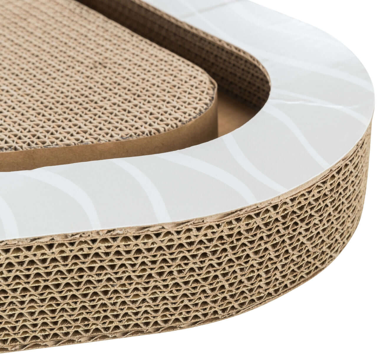 - Kratzpappe: Die robuste Oberfläche bietet die ideale Möglichkeit, die Krallen zu pflegen und Möbel vor Kratzschäden zu schützen.